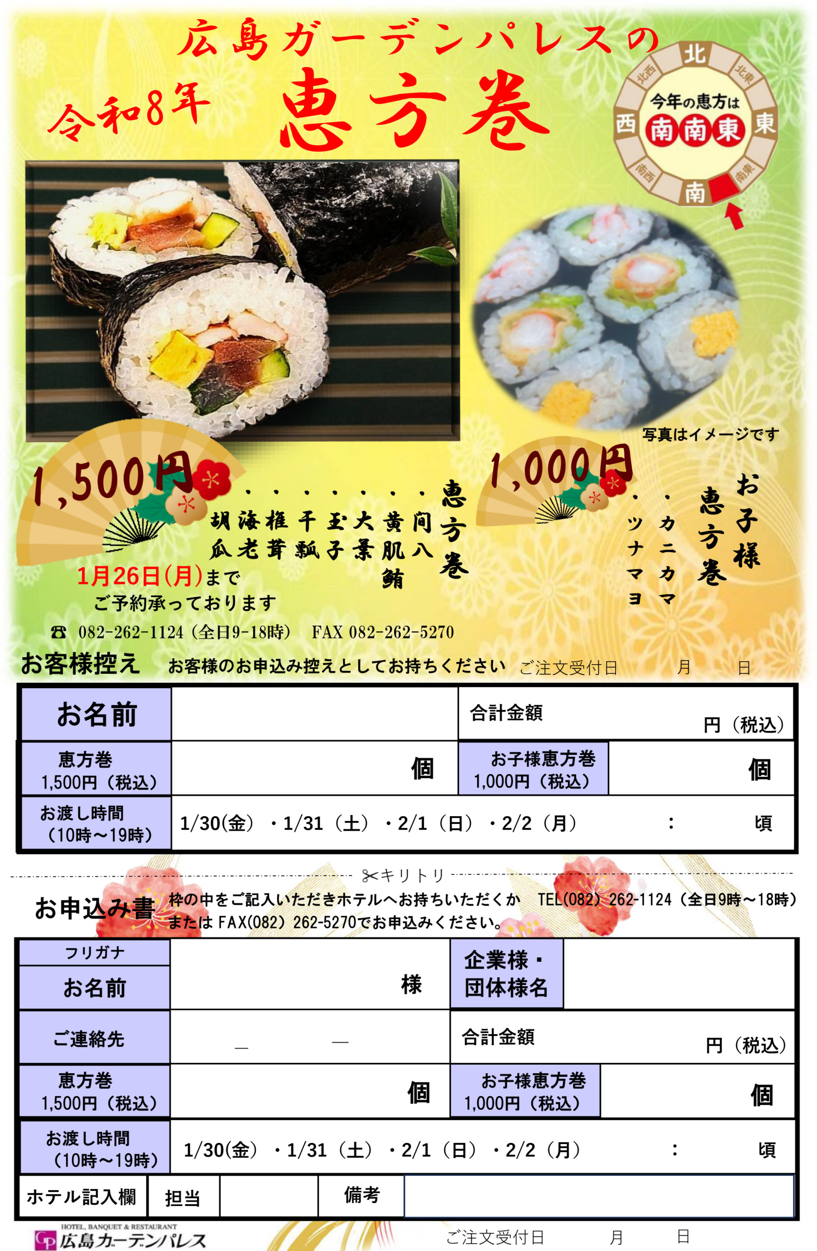 広島ガーデンパレス特製恵方巻 ご予約承り中です!